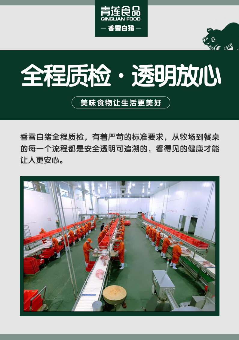 香雪白豬抗病力強(qiáng),在飼養(yǎng)過程中全程無需使用任何抗生素、化學(xué)藥物、生長激素等。全程無抗飼養(yǎng)而成的香雪白豬,生鮮肉品品質(zhì)更安心。